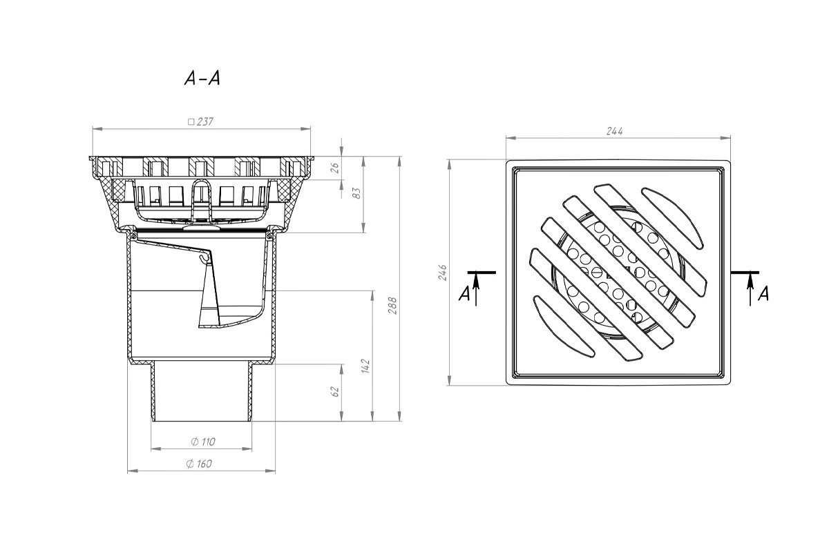 ТРАП С ВЕРТИКАЛЬНЫМ ВЫПУСКОМ Ø110, 160 (серия 606)