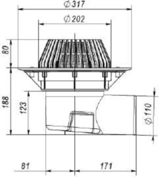 Воронка кровельная горизонтальная с листвоуловителем для неэксплуатируемых кровель с нержавеющим фланцем (М-01.197) Ø110мм