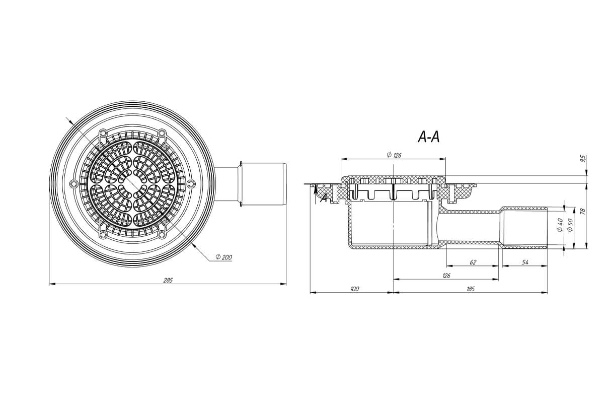 Воронка с плоским листоуловителем для эксплуатируемых кровель, без прижимного фланца (М-01.189) Ø40/50