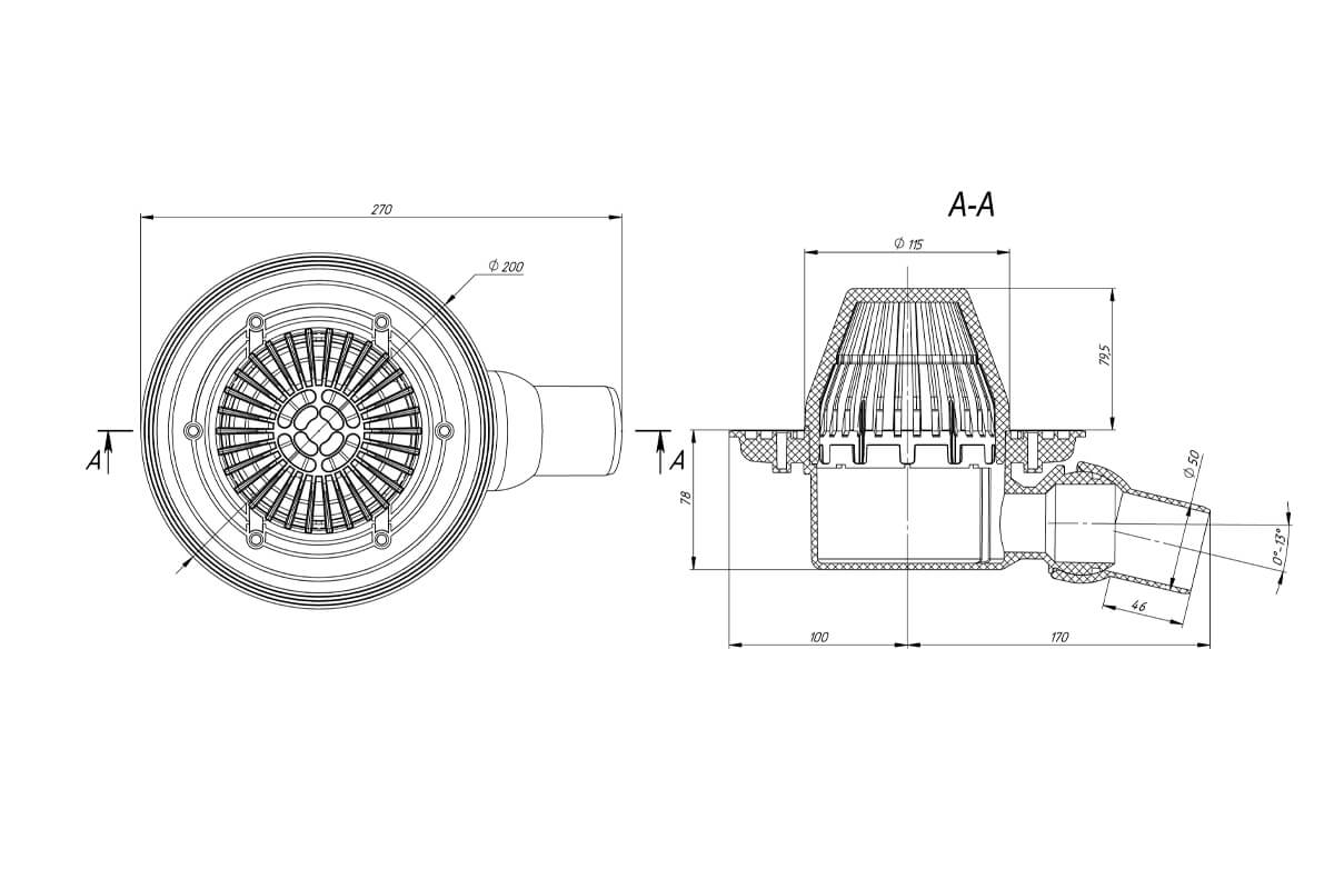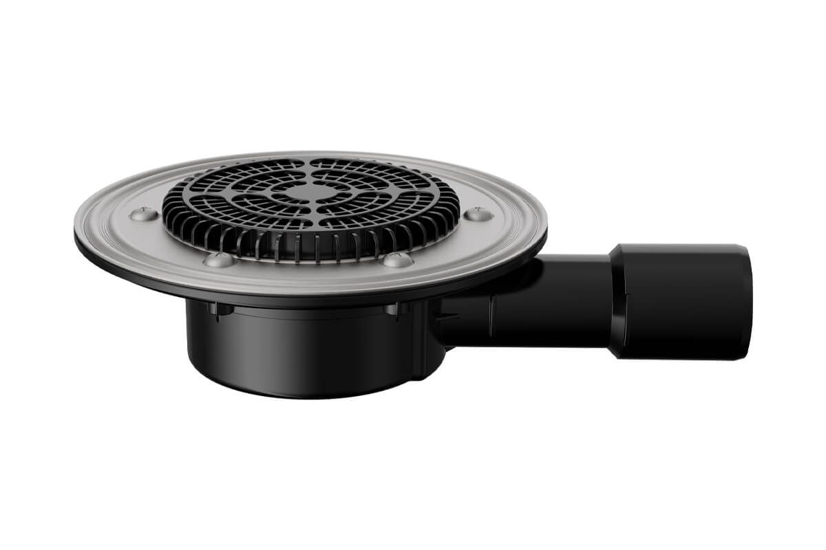 Воронка с плоским листоуловителем для эксплуатируемых кровель, с прижимным фланцем, с малой высотой корпуса (М-01.262) Ø40/50