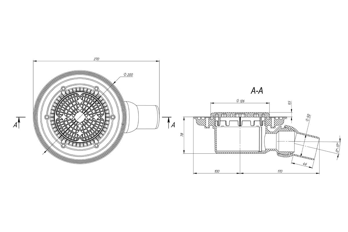 Воронка с плоским листвоуловителем для эксплуатируемых кровель, без прижимного фланца (М-01.193) Ø50